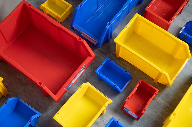 零件盒提供紅、黃、藍三種顏色及六種尺寸供選擇,方便各種物料、零件、工具收納整齊